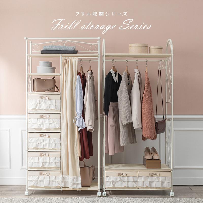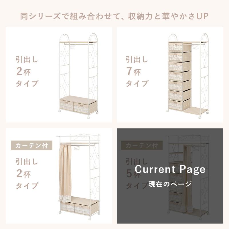 萩原 ハンガーラック KHR-3163PI ピンク 衣類収納 アイアン かわいい コート掛け キャスター付