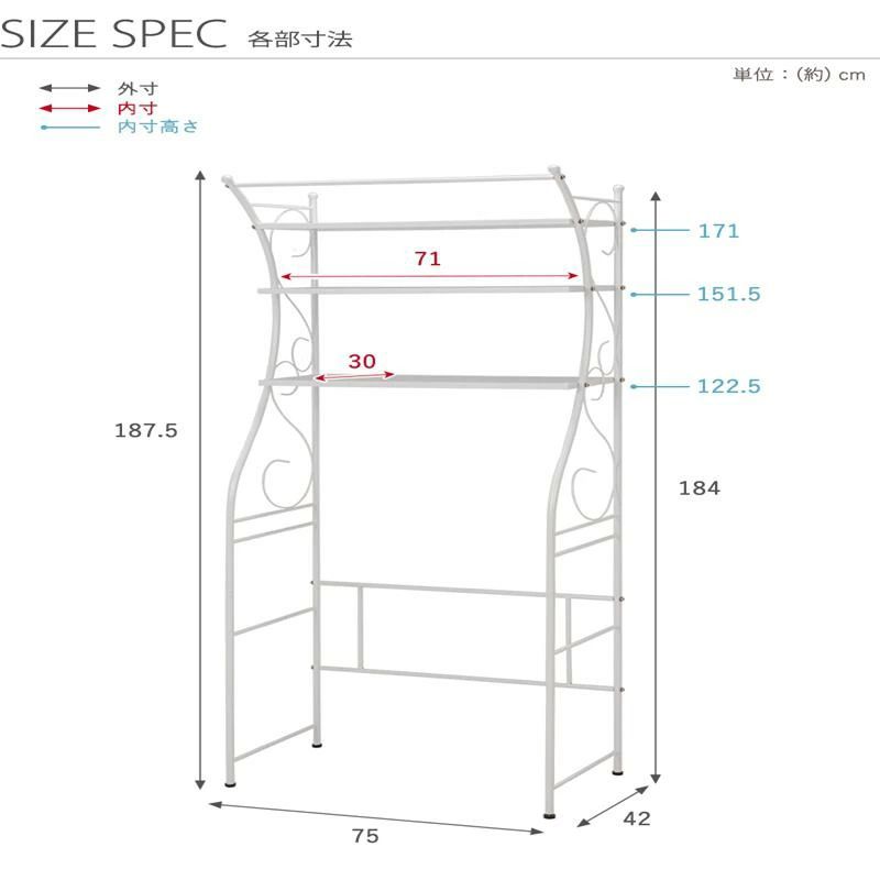アイアンの曲線がエレガント 洗濯機の上を活用できるラック
