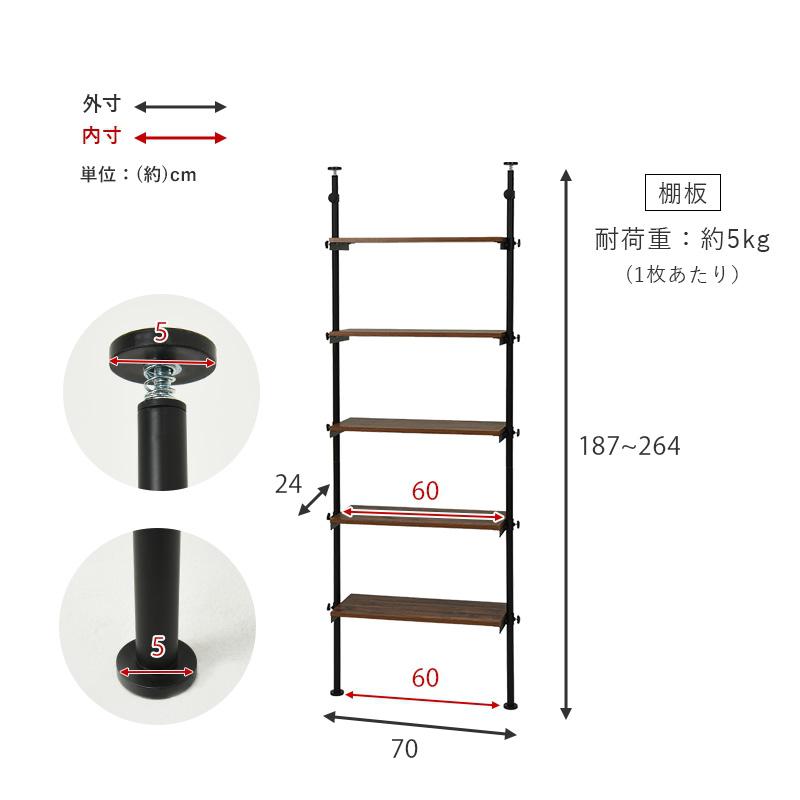 ・商品サイズ(外寸):約幅70x奥行24x高さ187〜264cm