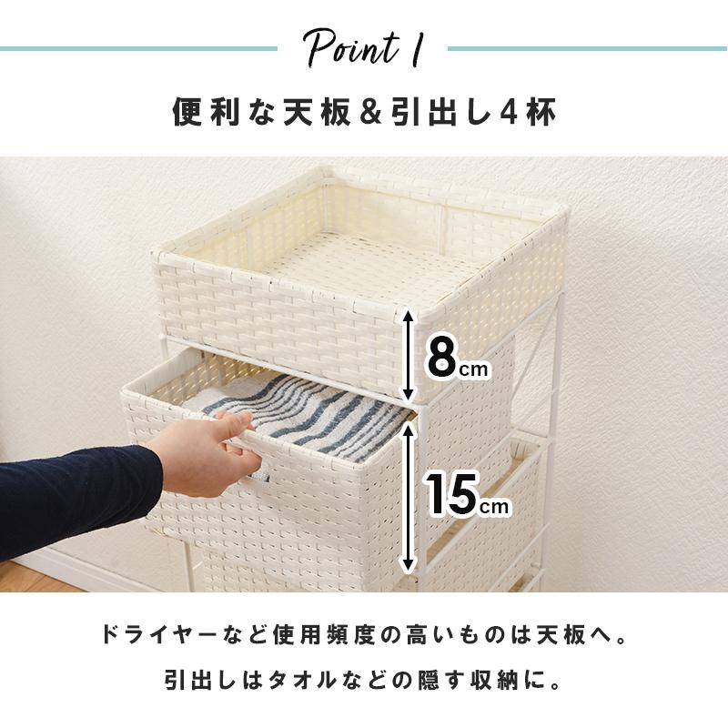 萩原 ランドリー RAN-2410GY グレー 収納 サニタリー 衣類収納 引出 ラタン調 キャスター付