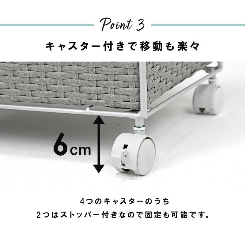 萩原 ランドリー RAN-2411GY グレー 収納 サニタリー 衣類収納 引出 ラタン調 キャスター付