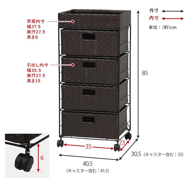 ・引出し内寸:約幅35.5x奥行27.5x高さ15cm