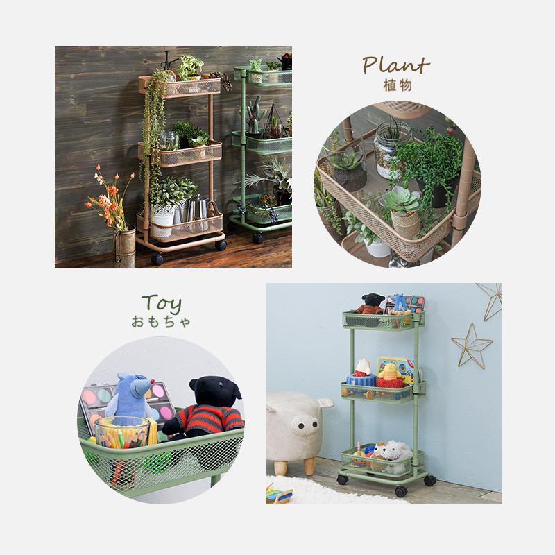 萩原 トローリーワゴン KR-3365DBR ダークブラウン 収納ワゴン 3段 サイドテーブル 収納棚 キャスター付 ランドセル収納