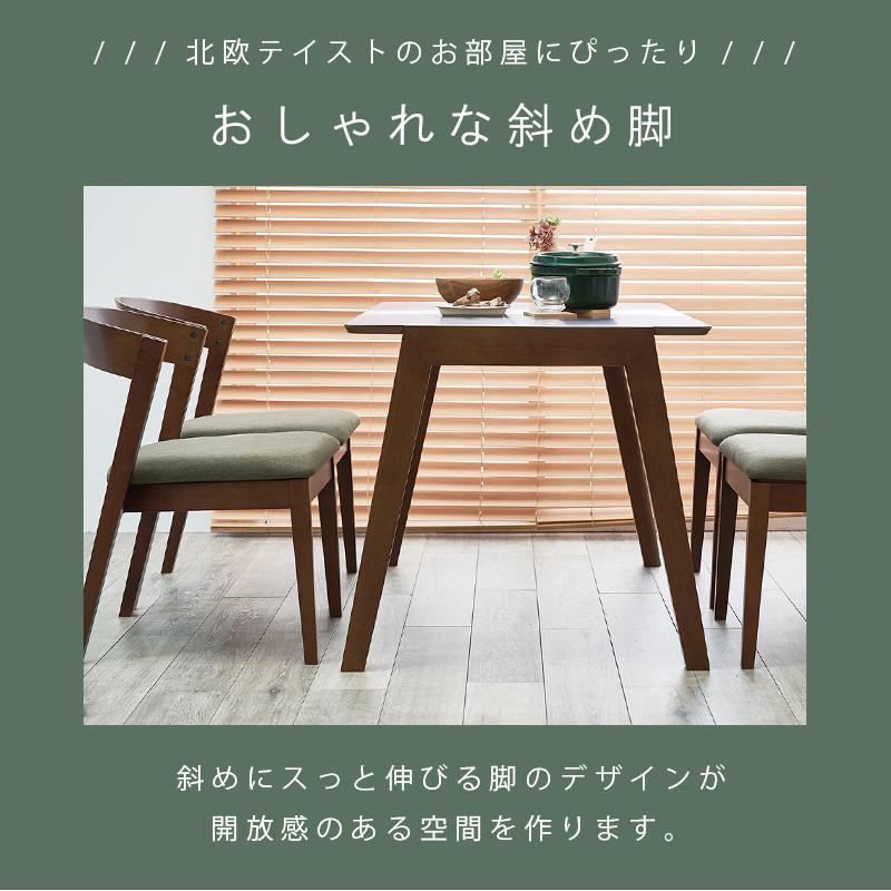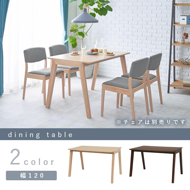 斜めに伸びたあしのデザインがオシャレな天然木を使用したダイニングテーブル幅120cm