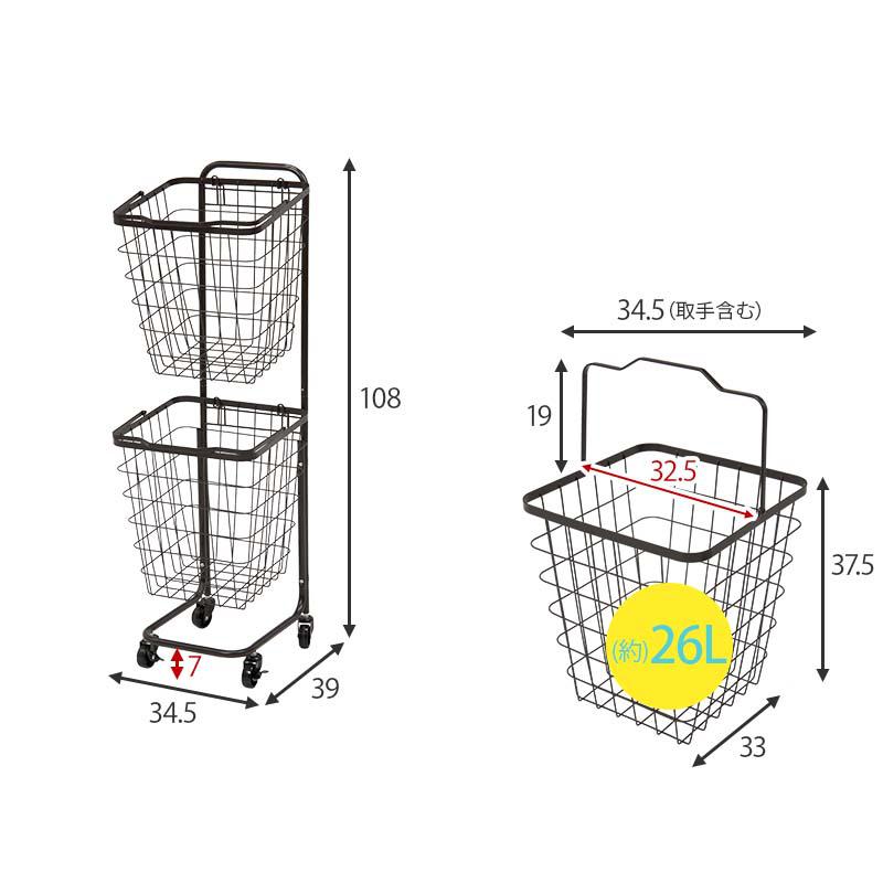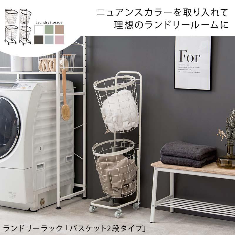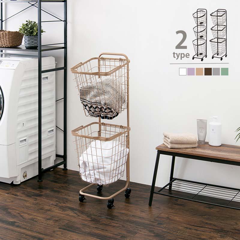 ランドリー バスケット 2段 分別 洗濯 縦型 省スペース 取り外し可能 スタッキング可能 広口 キャスター付 お手入れ簡単 格子デザイン 白