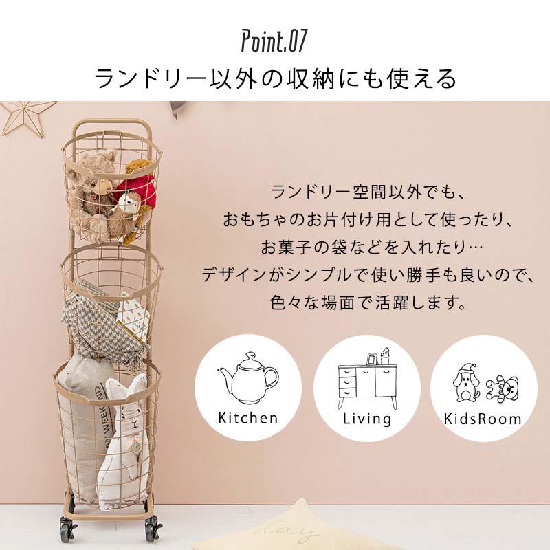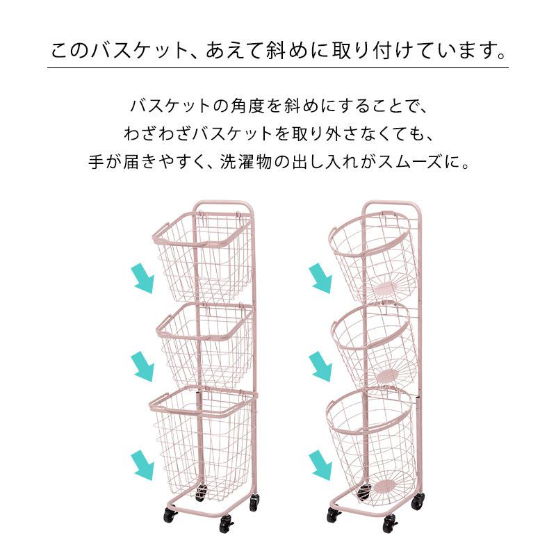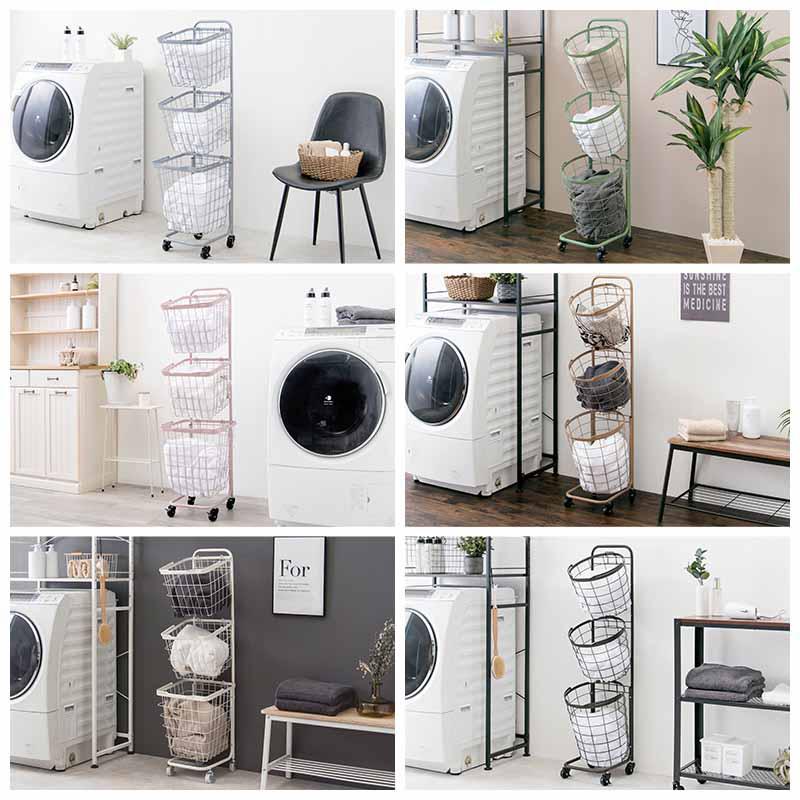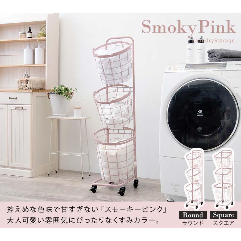 萩原 3段ランドリーラック(丸型) KR-3973PI 丸型/スモーキーピンク KR-3973PI