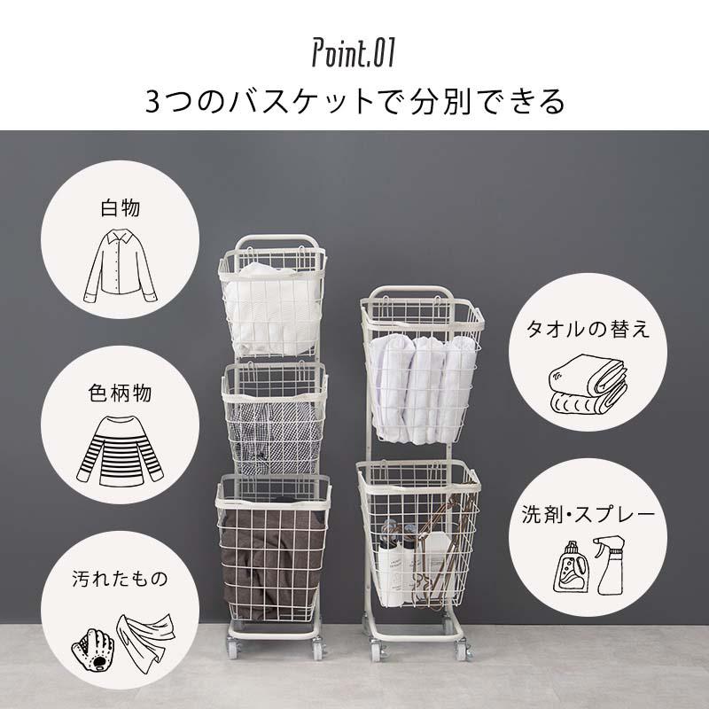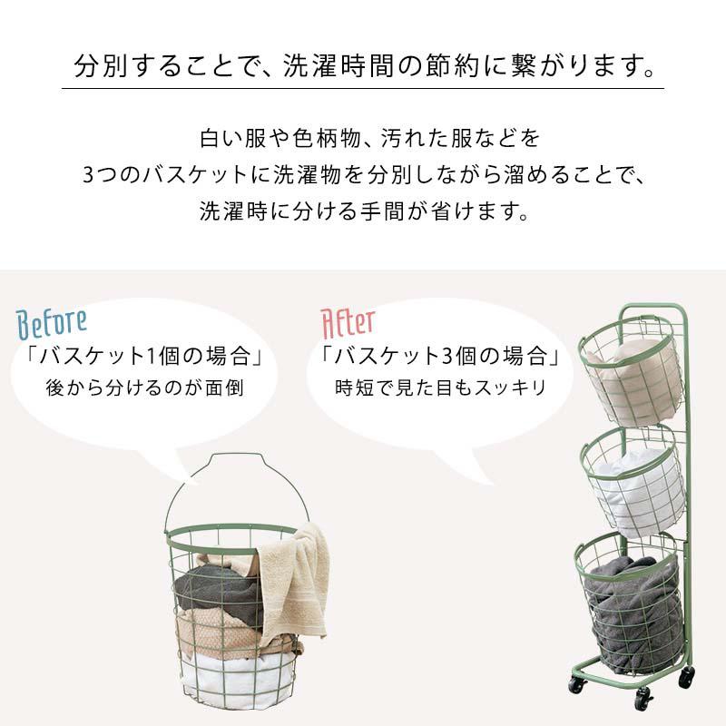 ・3つのバスケットで分別でき、洗濯時間の節約に