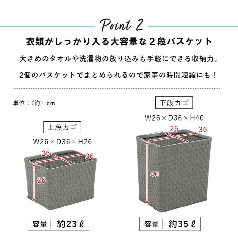 色柄物や汚れた洗濯物を分けて溜められるランドリーワゴン