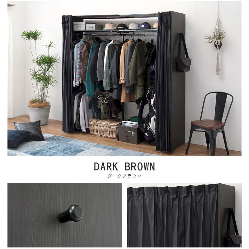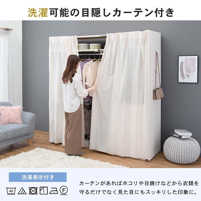クローゼット ハンガー カーテン付き ハンガーラック 収納家具 伸縮 上棚付 サイドフック付き カーテン 洗濯可能