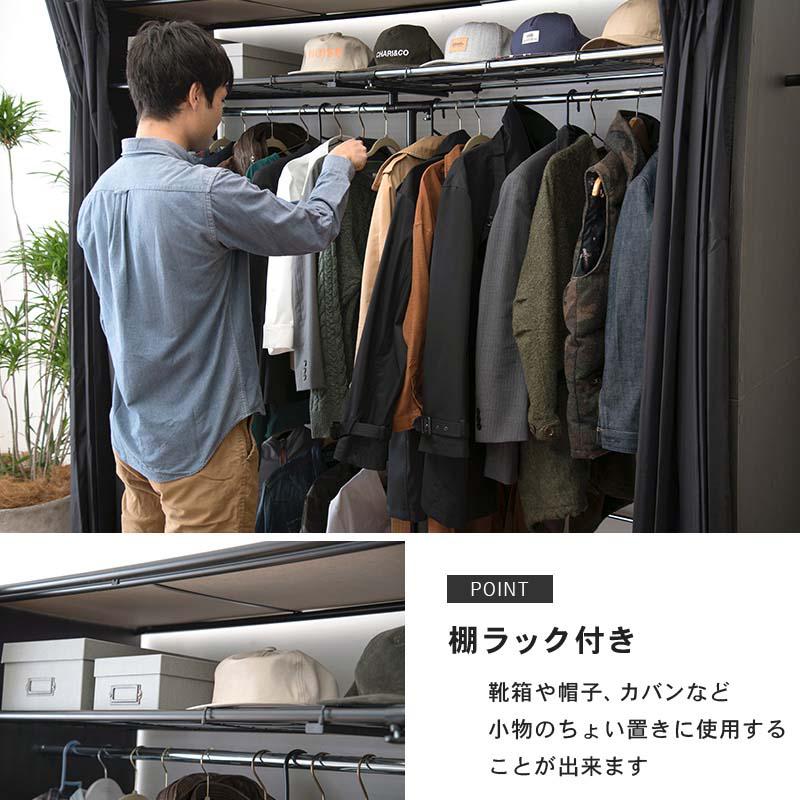 ・カーテン付きで目隠し出来るから季節物の服や雑貨、ゴルフバッグや衣装ケースなど服だけでなく普段使わないものをまとめて収納可能
