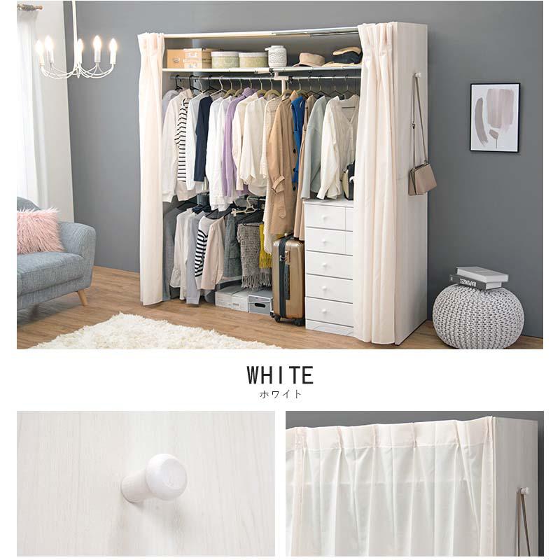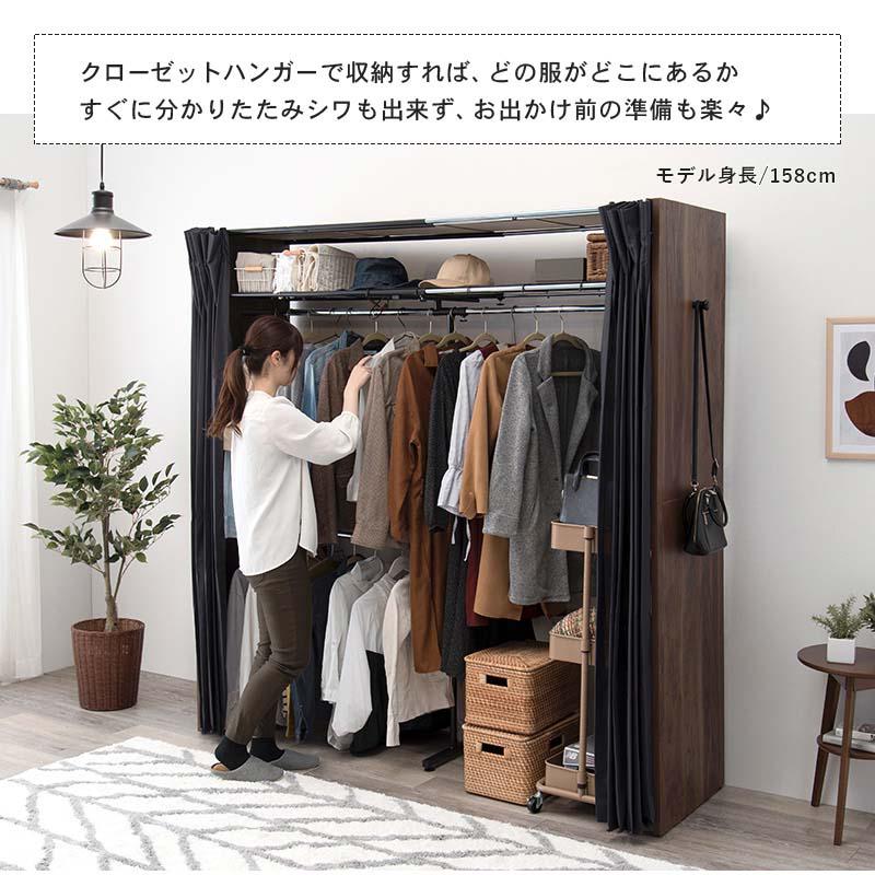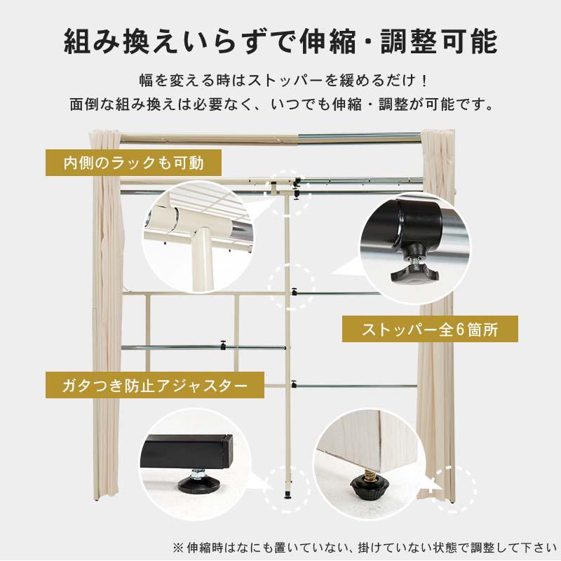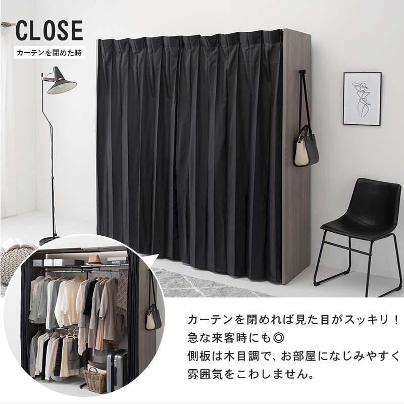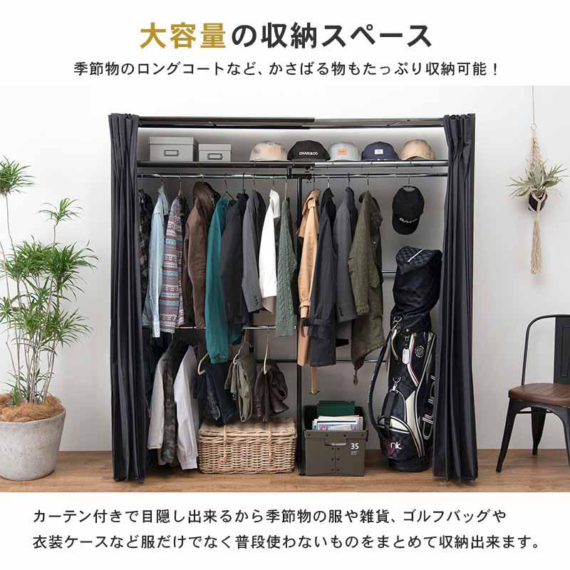 クローゼット ハンガー カーテン付き ハンガーラック 収納家具 伸縮 上棚付 サイドフック付き カーテン 洗濯可能
