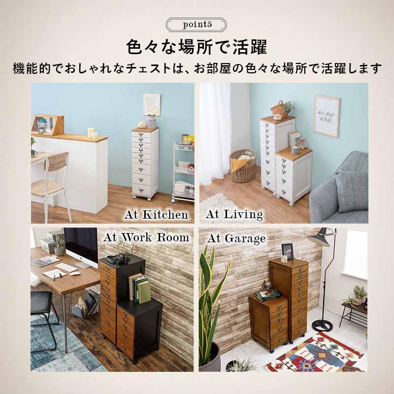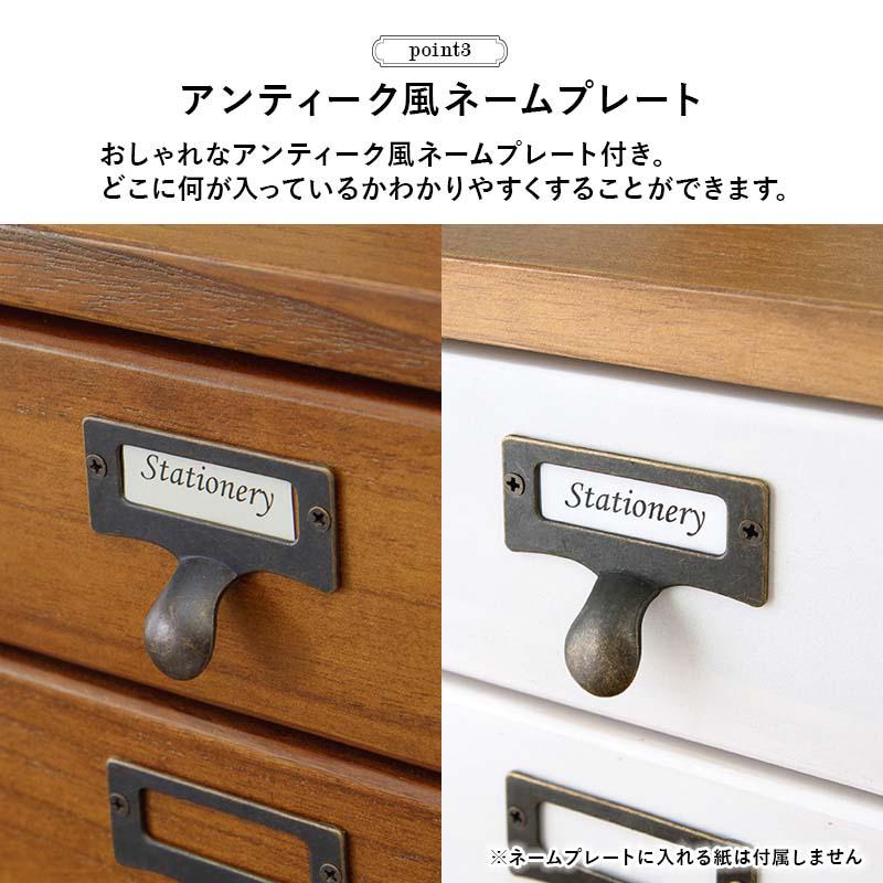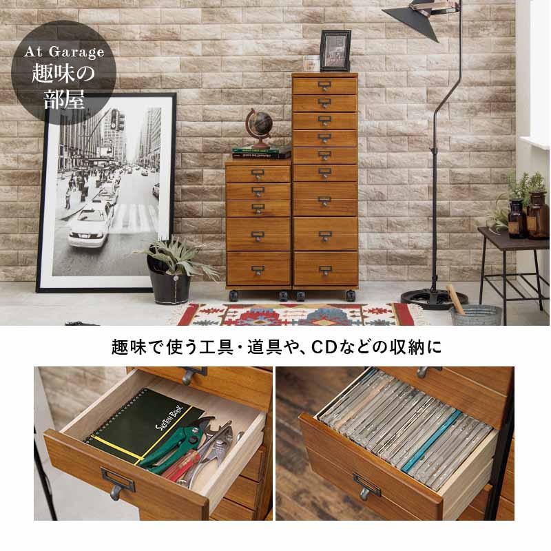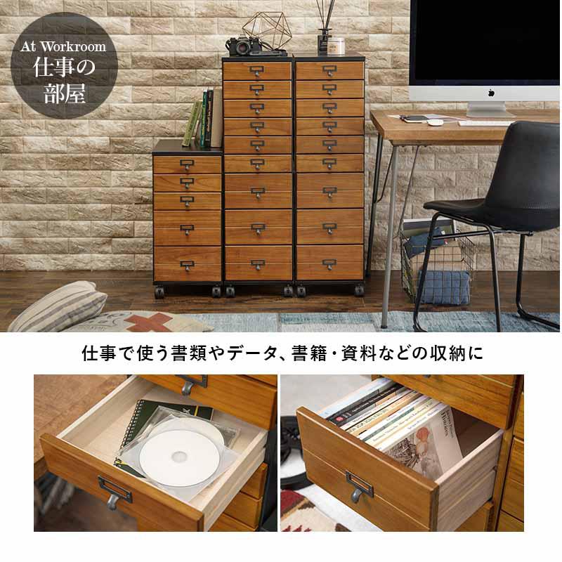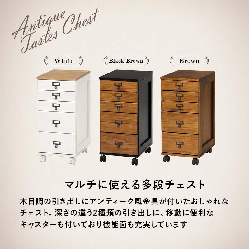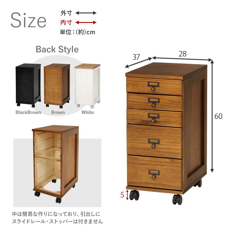 キャスター付き 5段チェスト アンティーク風 ネームプレート A4クリアファイル 天然木 桐 リビング キッチン 仕事 趣味 収納 引き出し