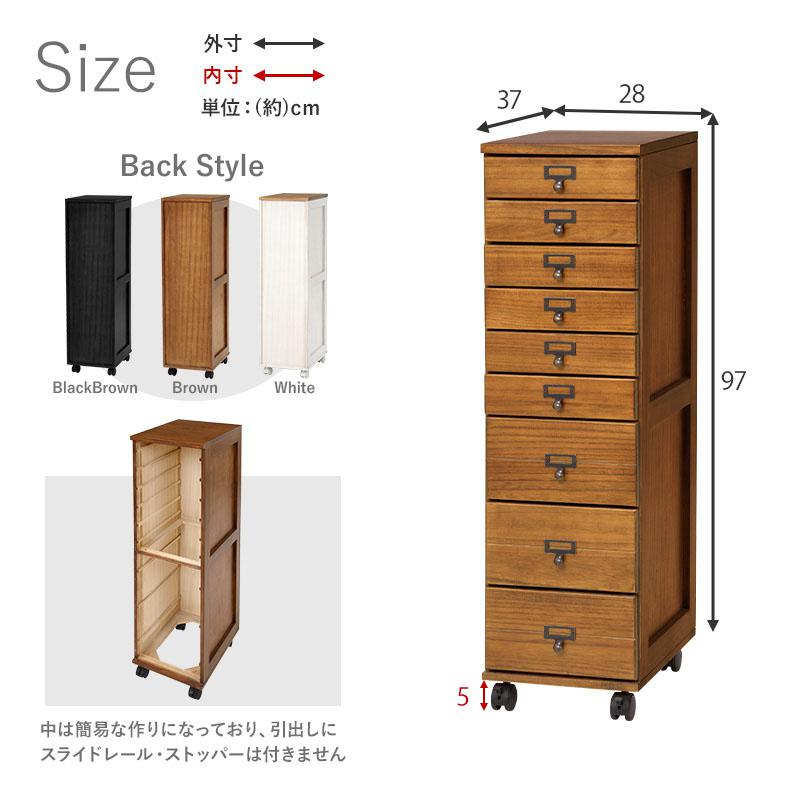 キャスター付き 5段チェスト アンティーク風 ネームプレート A4クリアファイル 天然木 桐 リビング キッチン 仕事 趣味 収納 引き出し