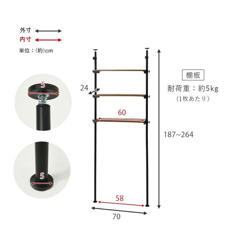 ・商品サイズ(外寸):約幅70x奥行24x高さ187〜264cm