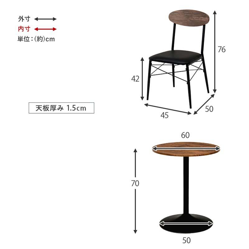 萩原 テーブル&チェア3点セット LT-4918BR78BK-S 丸型/ ブラウン ダイニングセット テーブル チェアー