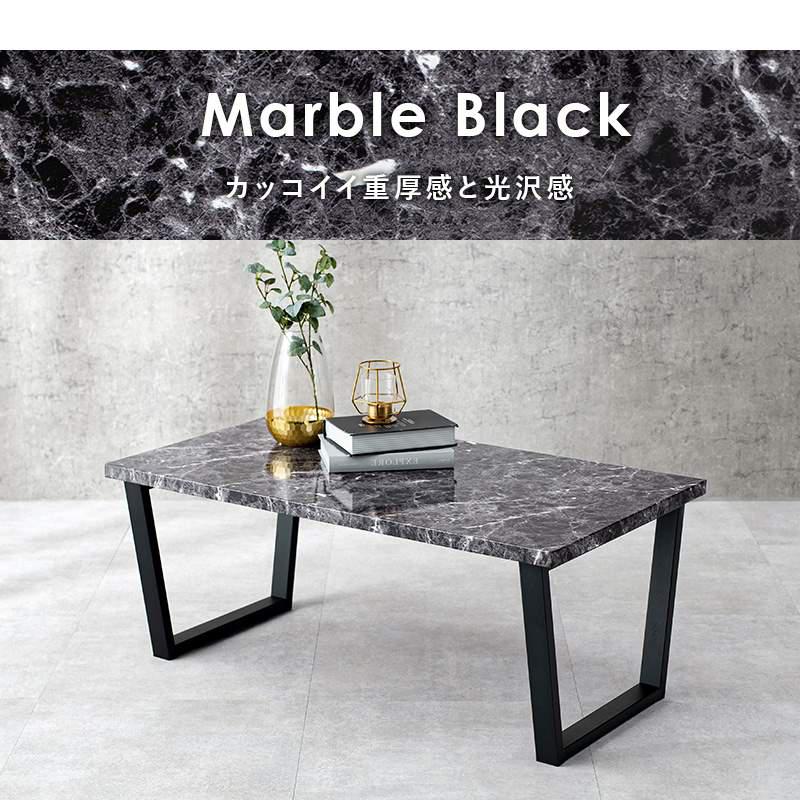 萩原 フリーテーブル LT-4395MBK マーブル ブラック センターテーブル 幅90x奥行50cm