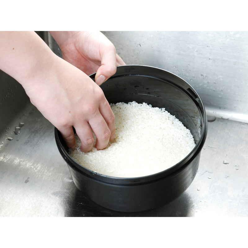 容器のまま米とぎをして、レンジで炊飯までを1台でこなします。