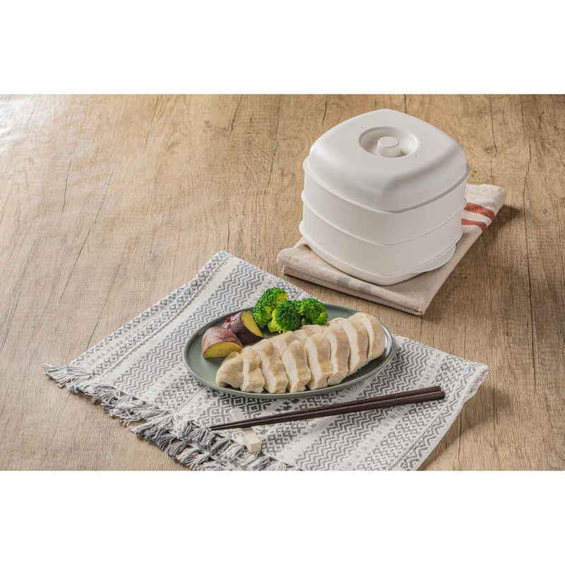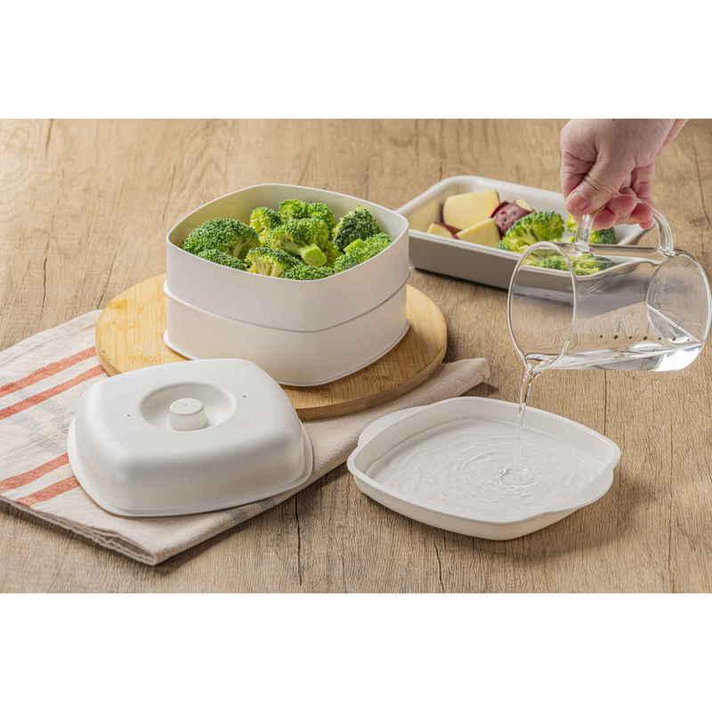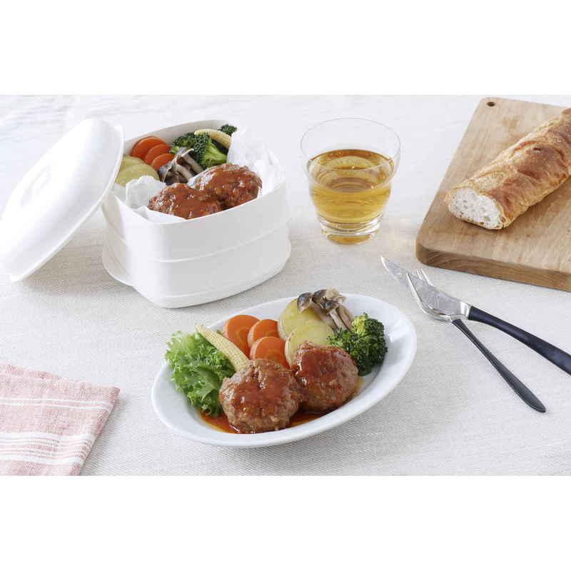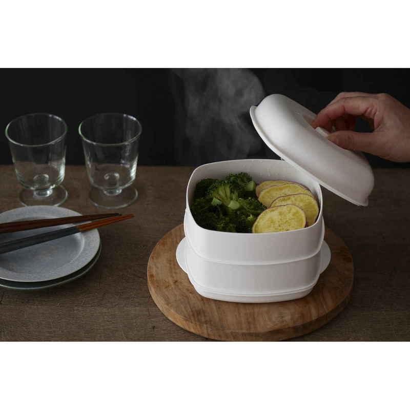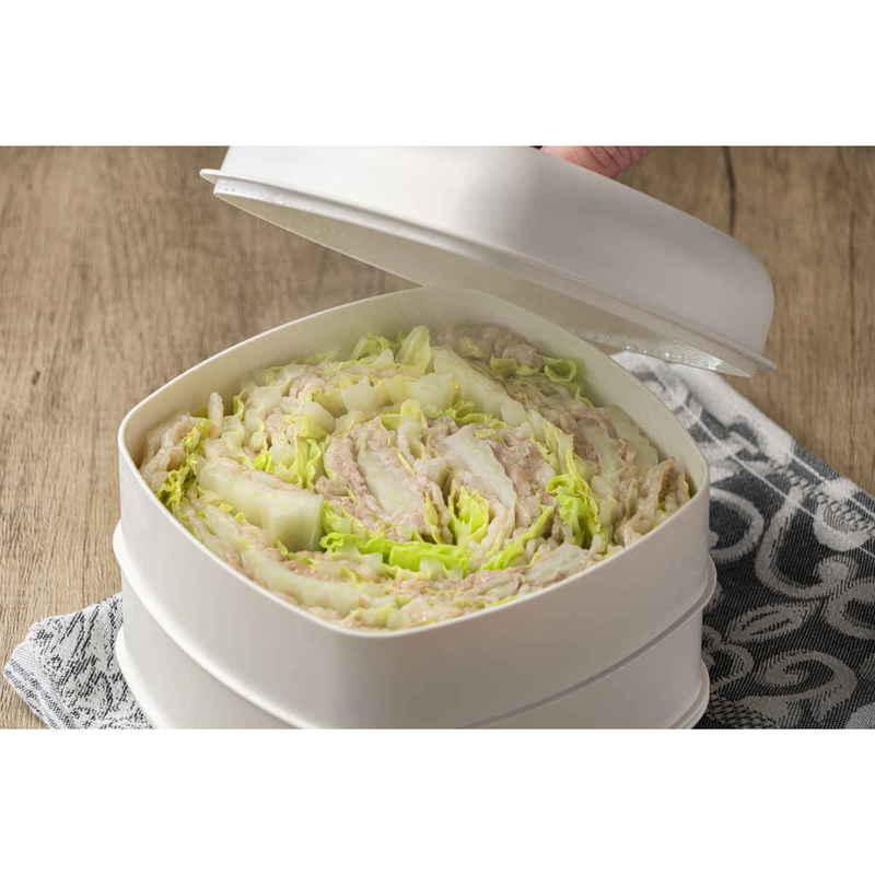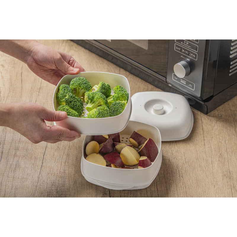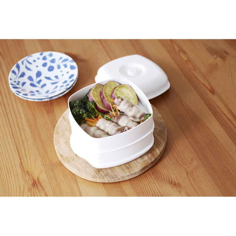電子レンジで手軽に蒸し料理ができる角型セイロです。