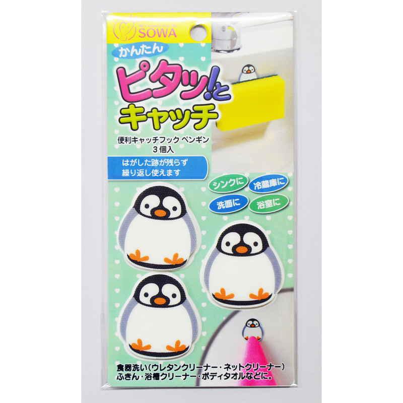 創和 タオル掛け 便利キャッチフック 3個入 ペンギン