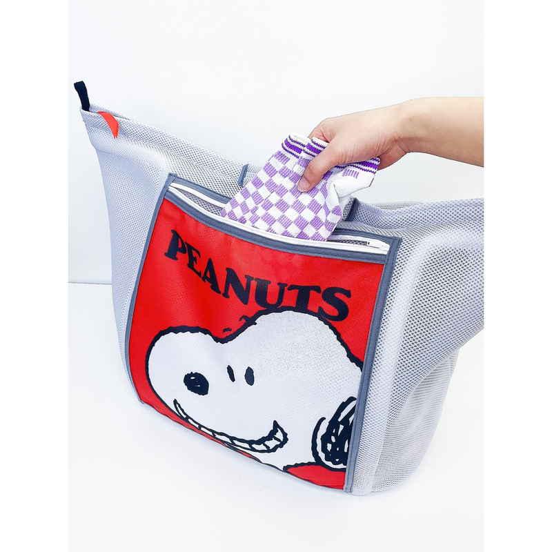 スヌーピーたちのかわいい絵柄がプリントされたサイドポケットが付いています。