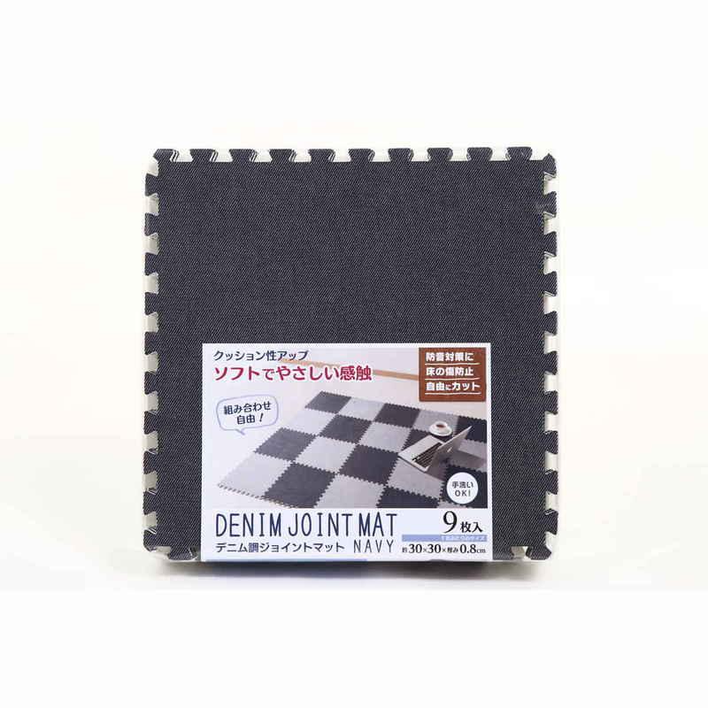 ユノックス ジョイントマット デニム調 9枚入り 30cm 厚さ0.8cm 0.5畳分 ネイビー