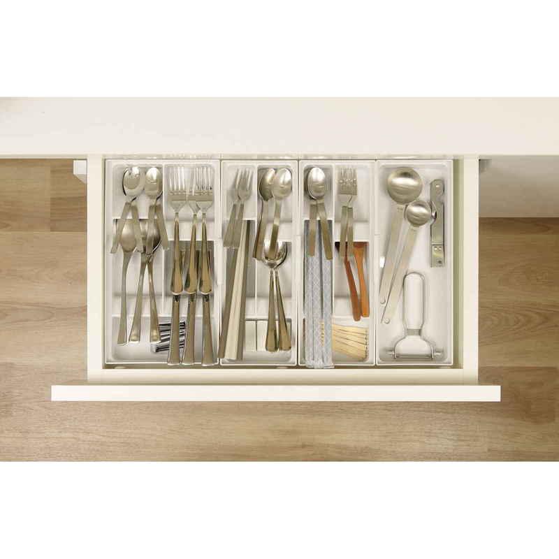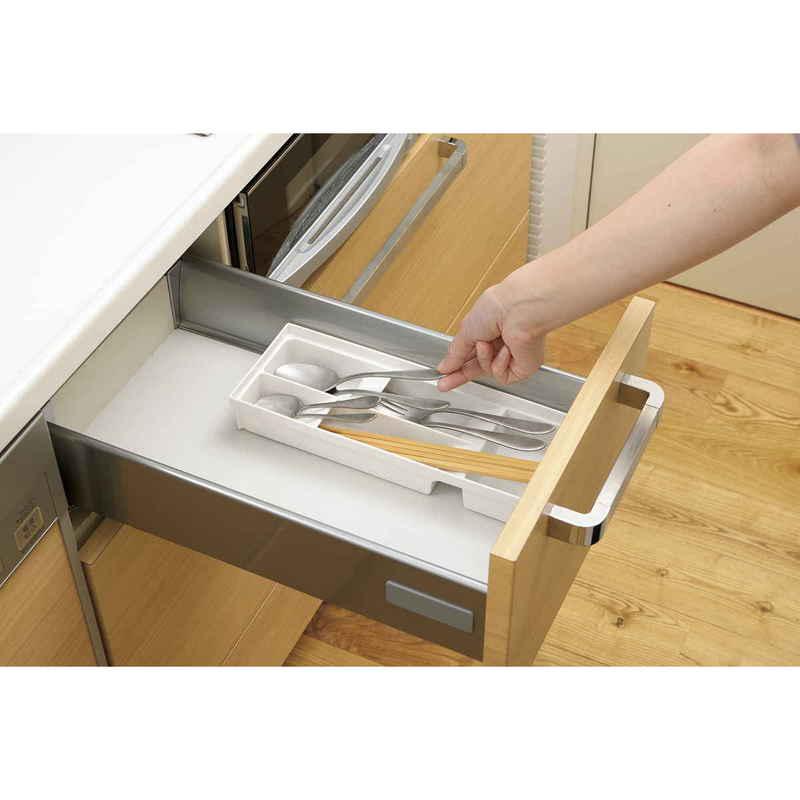 キッチンの引き出しの中をサイズ別に分けて、様々なカトラリーの定位置を作り美しく収納できます。