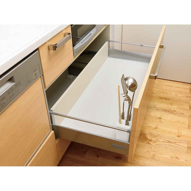 キッチンの深引き出し内にキッチンツールを立てて収納することができます。