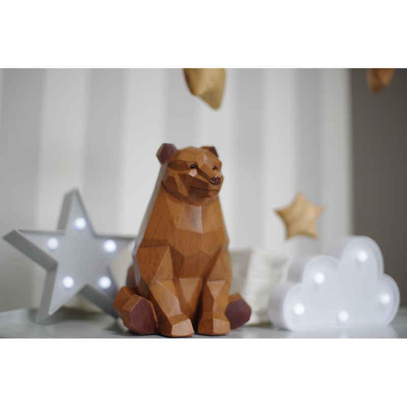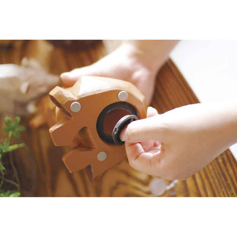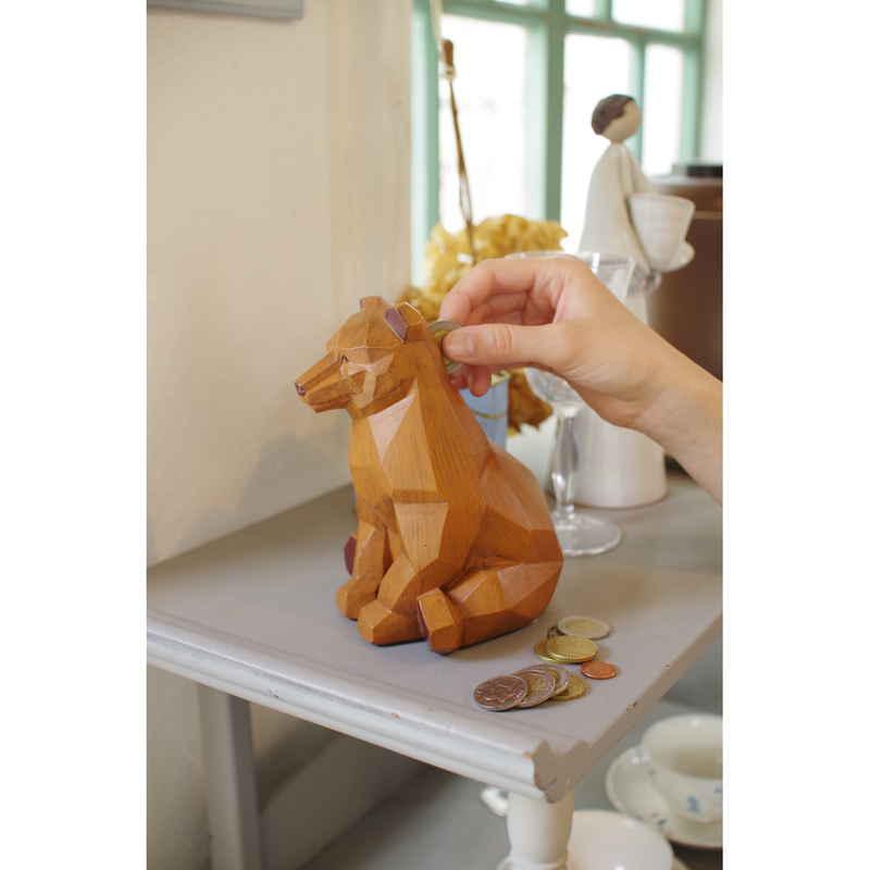 木彫り調のデザインがおしゃれな、樹脂製貯金箱です。