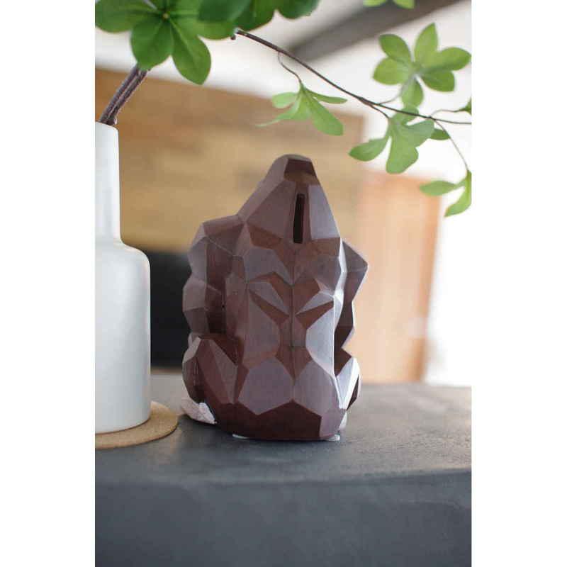 木彫り調のデザインがおしゃれな、樹脂製貯金箱です。