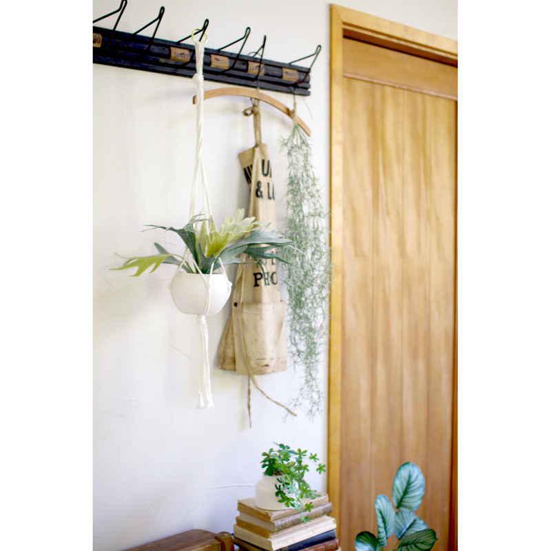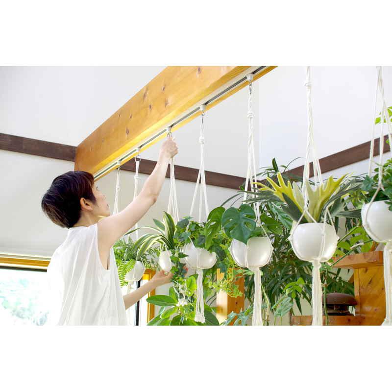 好きな場所に吊るせるマクラメハンギング付きで、紐を結べば長さ調整も可能です。
