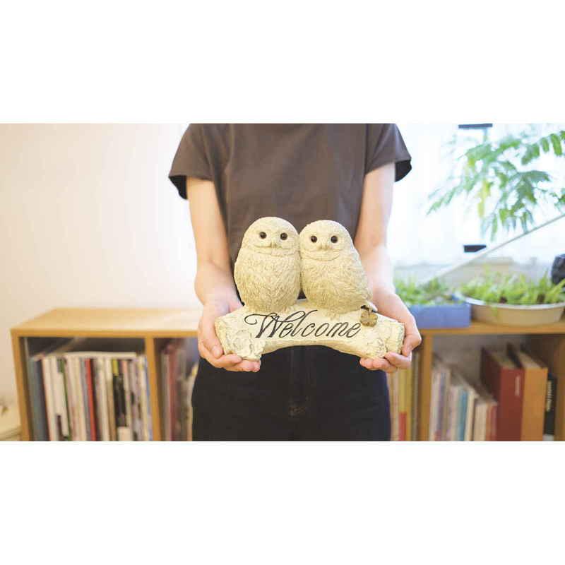 つぶらな瞳のキュートな仲良しフクロウのガーデンオーナメントです。