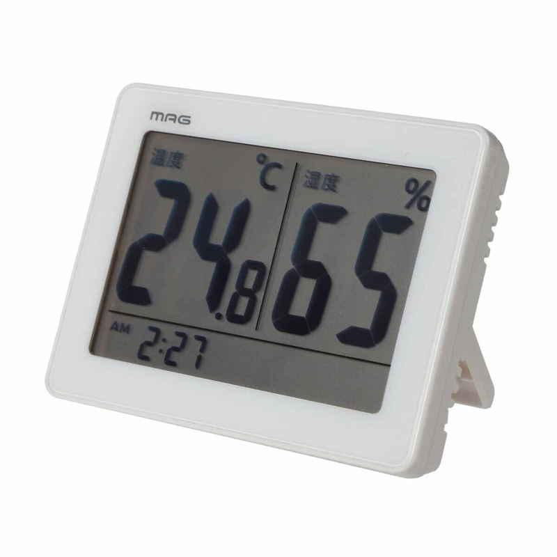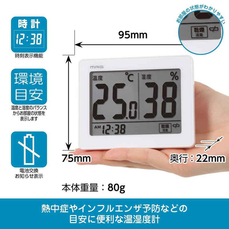 ノア精密 置き掛け時計 MAG 温度湿度計 スカイ ホワイト