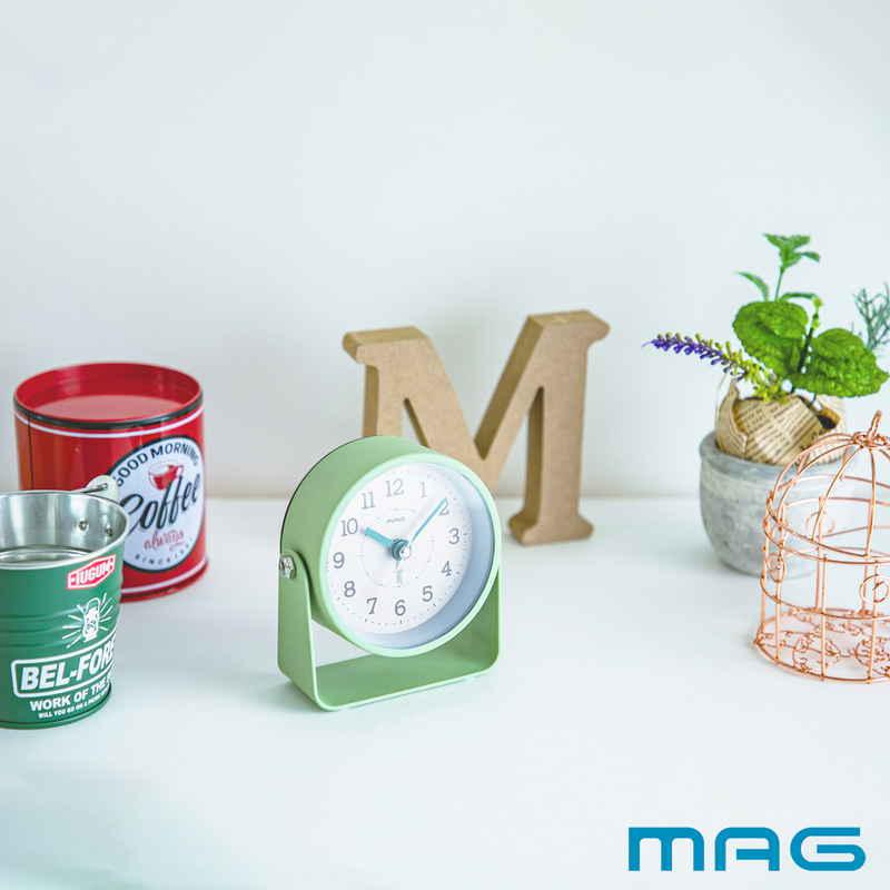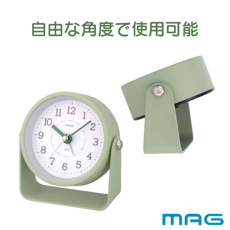 ノア精密 置き時計 モナカ MAG 連続秒針 目覚まし時計 グリーン