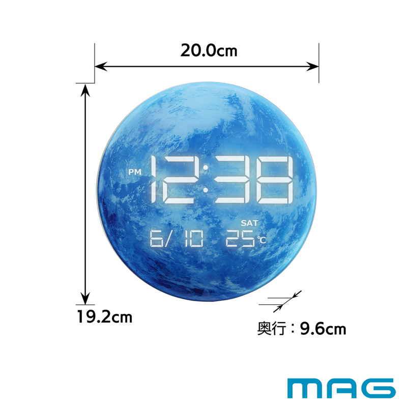 月面、地球にLEDで時刻が浮かび上がる、美しいインテリア時計です。