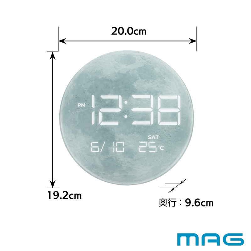 月面、地球にLEDで時刻が浮かび上がる、美しいインテリア時計です。