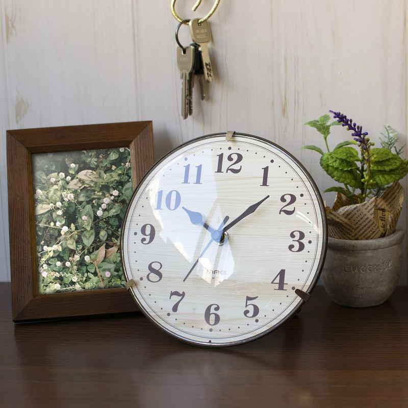 リビング、玄関先やテレビボードなど様々な場所にあわせて設置できる、置掛兼用タイプの時計です。