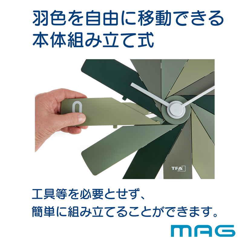 羽色を自由に移動できる、組み立て式のウォールクロックです。