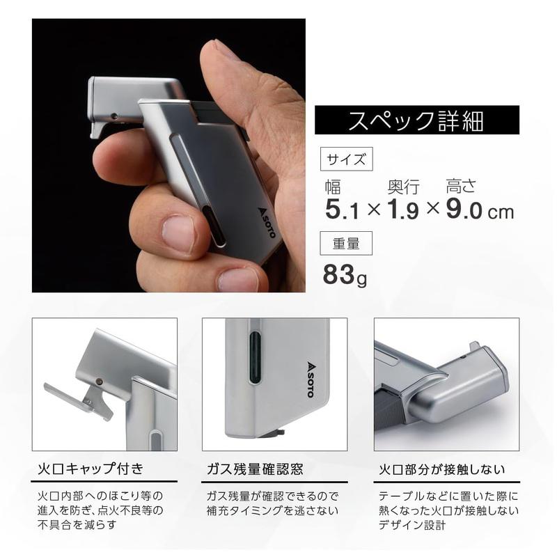 ・火口キャップ付きでゴミの侵入を防ぎ、点火不良等の不具合を軽減