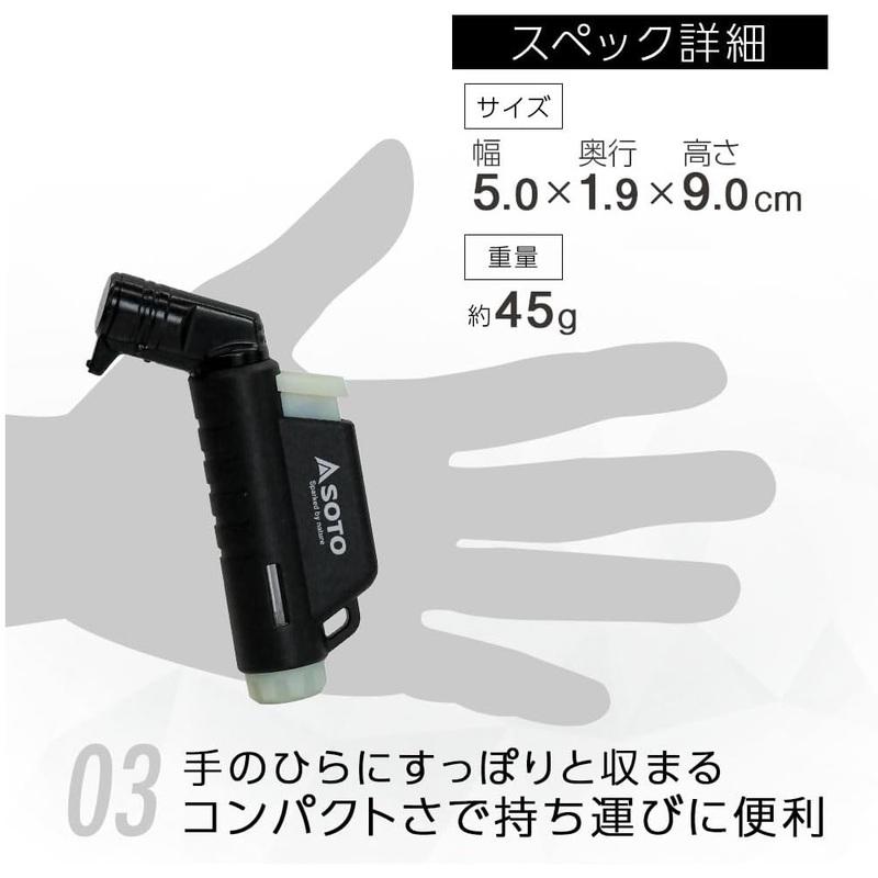 ・火口ヨコ型モデルで操作性に優れているため、バーナーや線香の着火、ロープの切断やマントルの空焚きなど幅広く活躍
