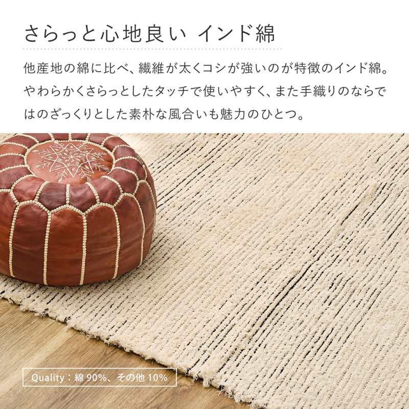 ”ひきさき製法”によって織りあげられたサステナブルな1枚やわらかくさらっとしたタッチのインド綿ラグマット