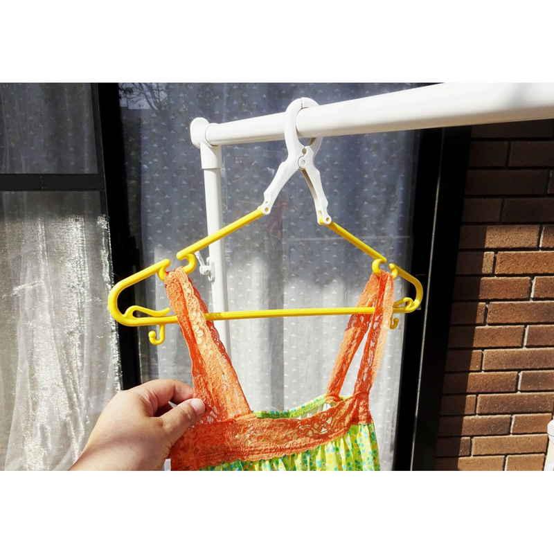 ハンガーの肩部分を握ると、グリップを折り曲げることができるので、丸首シャツもラクに干すことができます。
