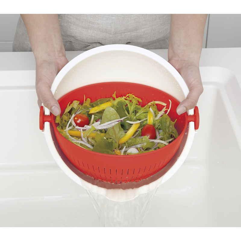 ボウルをザルに被せて振れば、よりしっかり水切りできます。
