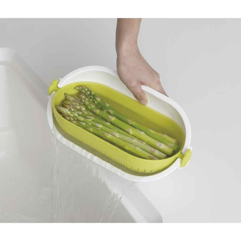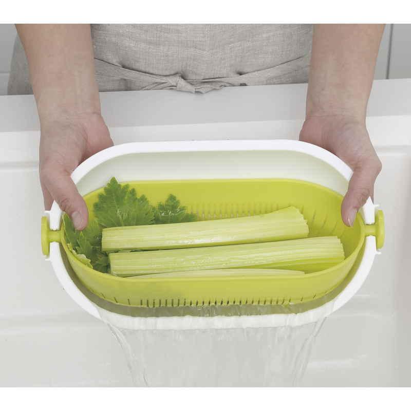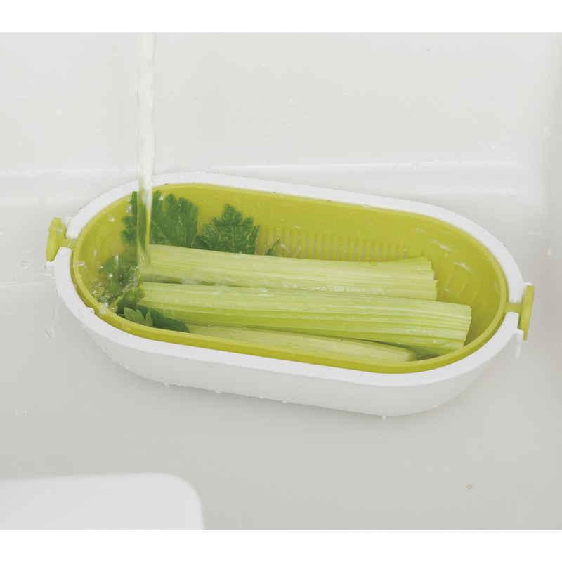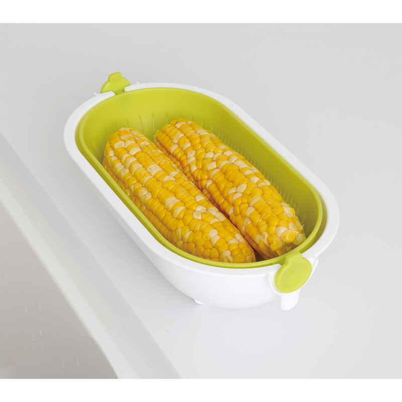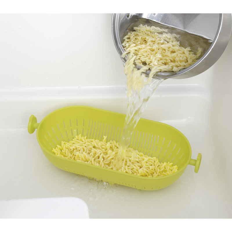 きゅうりなどの長い野菜を洗うときや麺類の湯切り、米とぎに便利です。