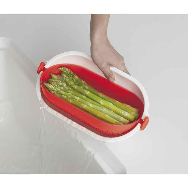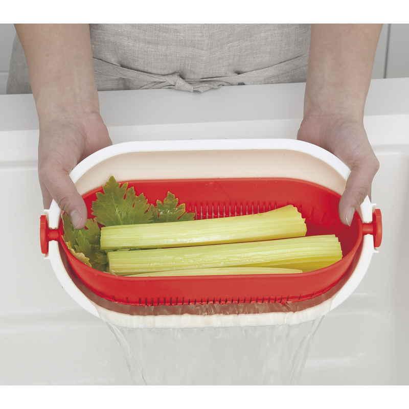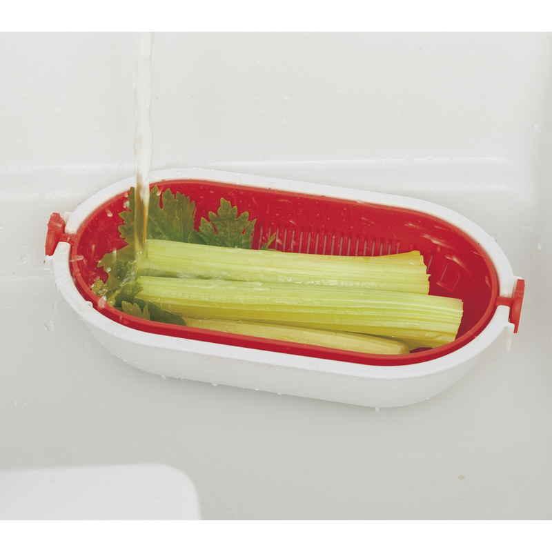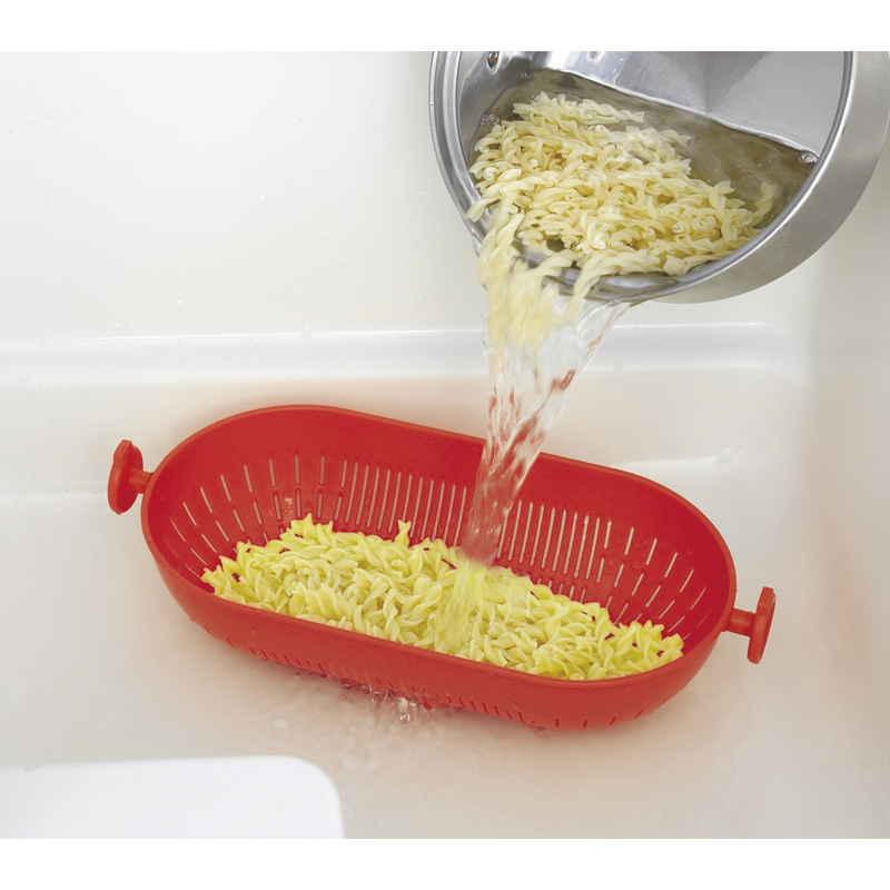 きゅうりなどの長い野菜を洗うときや麺類の湯切り、米とぎに便利です。