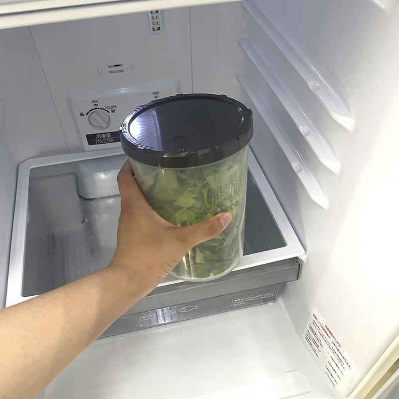 スクリュータイプでもれにくい保存容器Lサイズです。