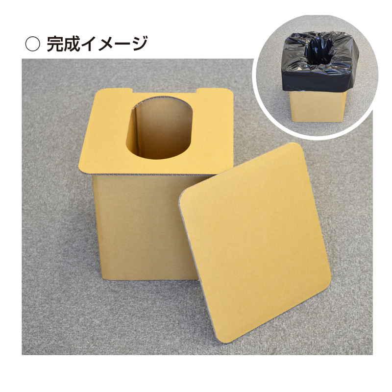 材質:組立式トイレ/ダンボール 汚物袋、処理袋/ポリエチレン 凝固剤/高分子ポリマー 消臭剤/ウッドパウダー