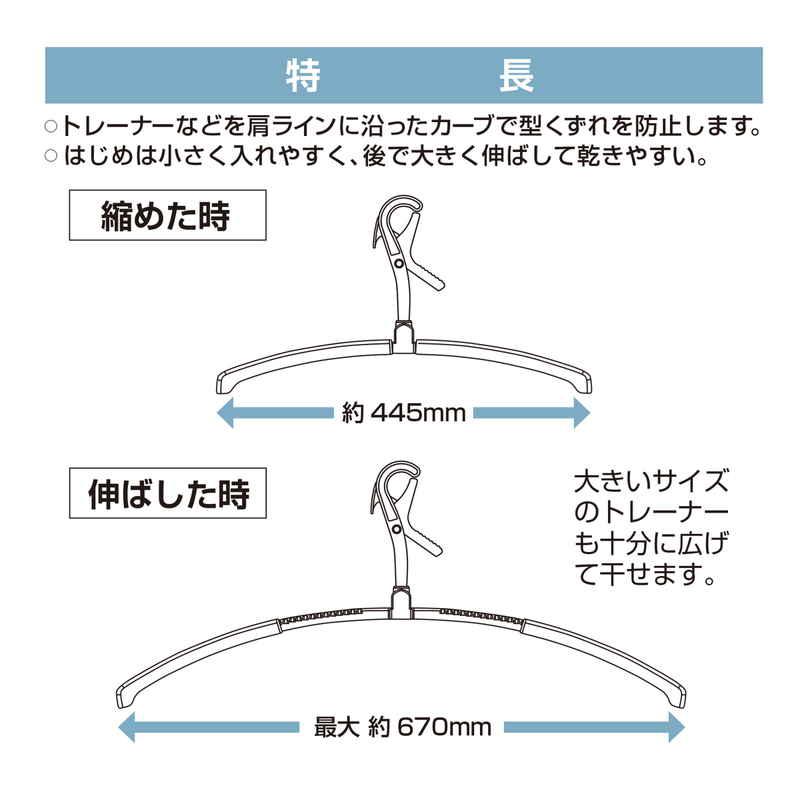 トレーナーなどを肩ラインに沿ったカーブで型くずれを防止します。