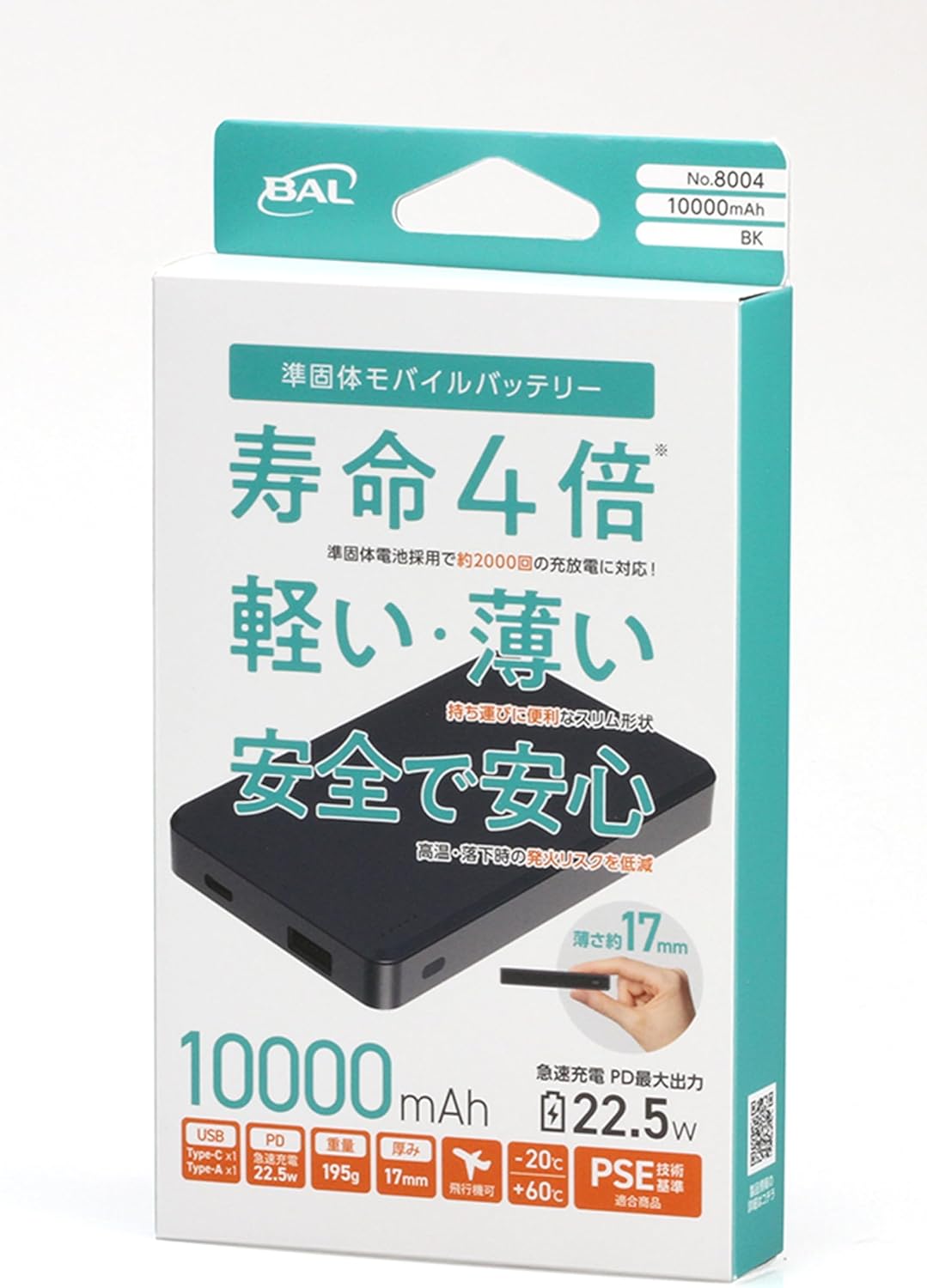 [即納在庫品] 大橋産業 準個体モバイルバッテリー 10000mAh BK 8004 8004