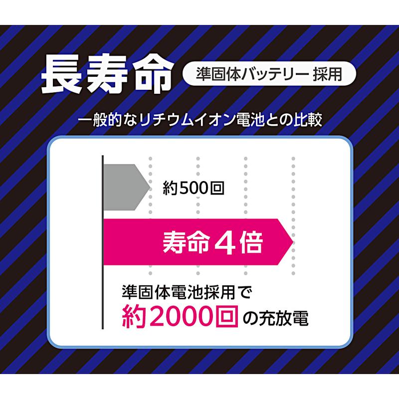 ○準固体リチウムイオン電池採用で約2000回の充放電に対応!