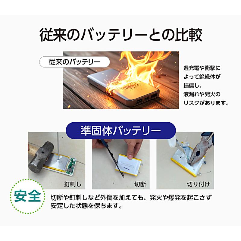 ○安全性が高い準固体電池を採用!